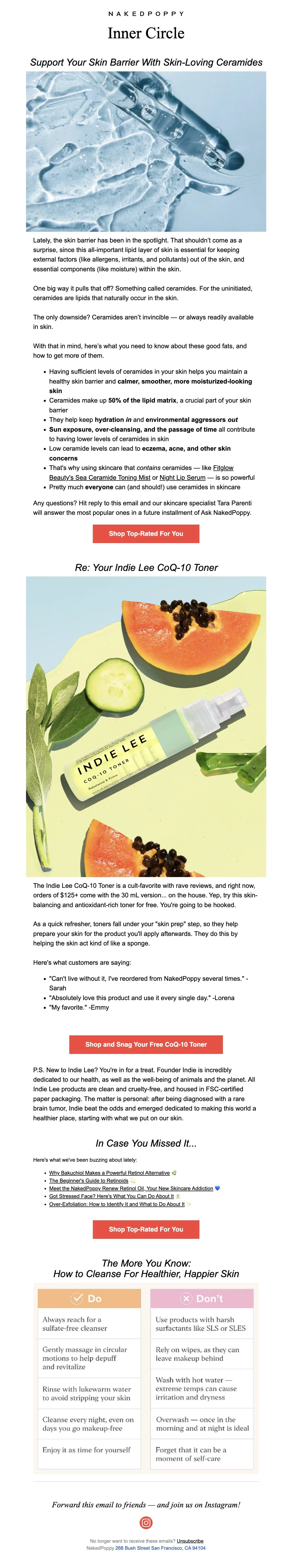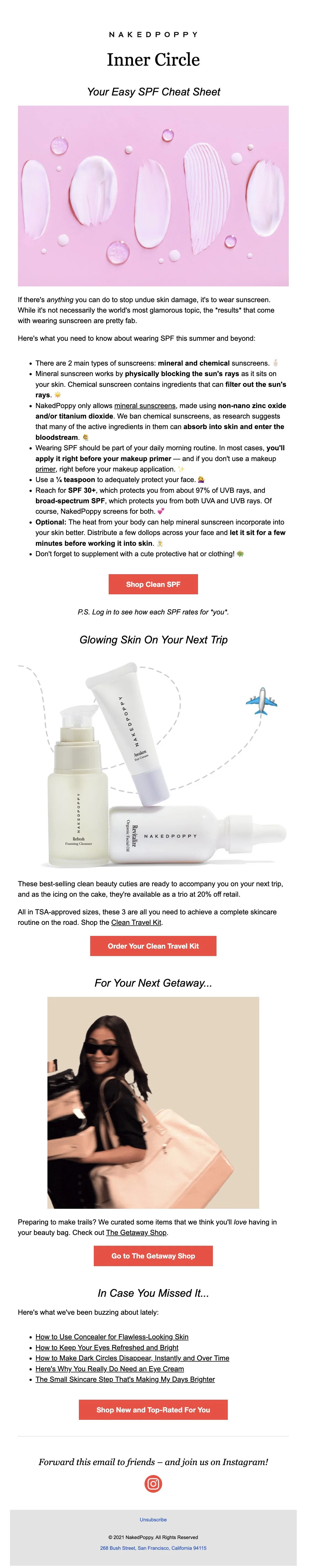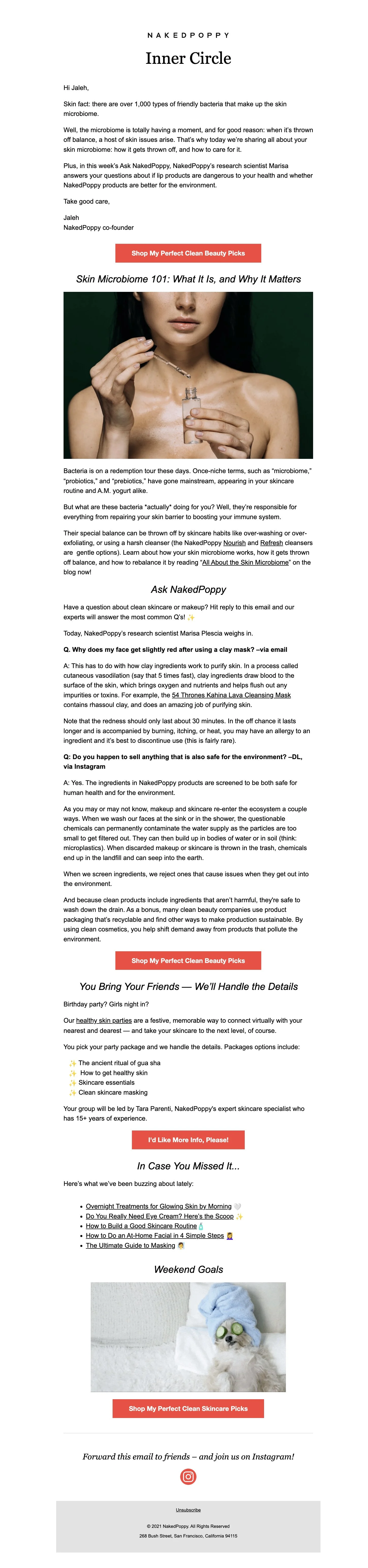Developed and executed email newsletter strategy for venture-backed tech company NakedPoppy Clean Beauty. NakedPoppy was a tech-driven clean beauty e-tailer offering skincare and makeup.
